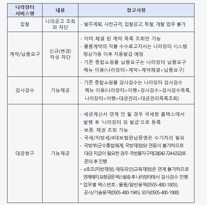 [긴급공지] 나라장터 서비스 일시 중단 안내