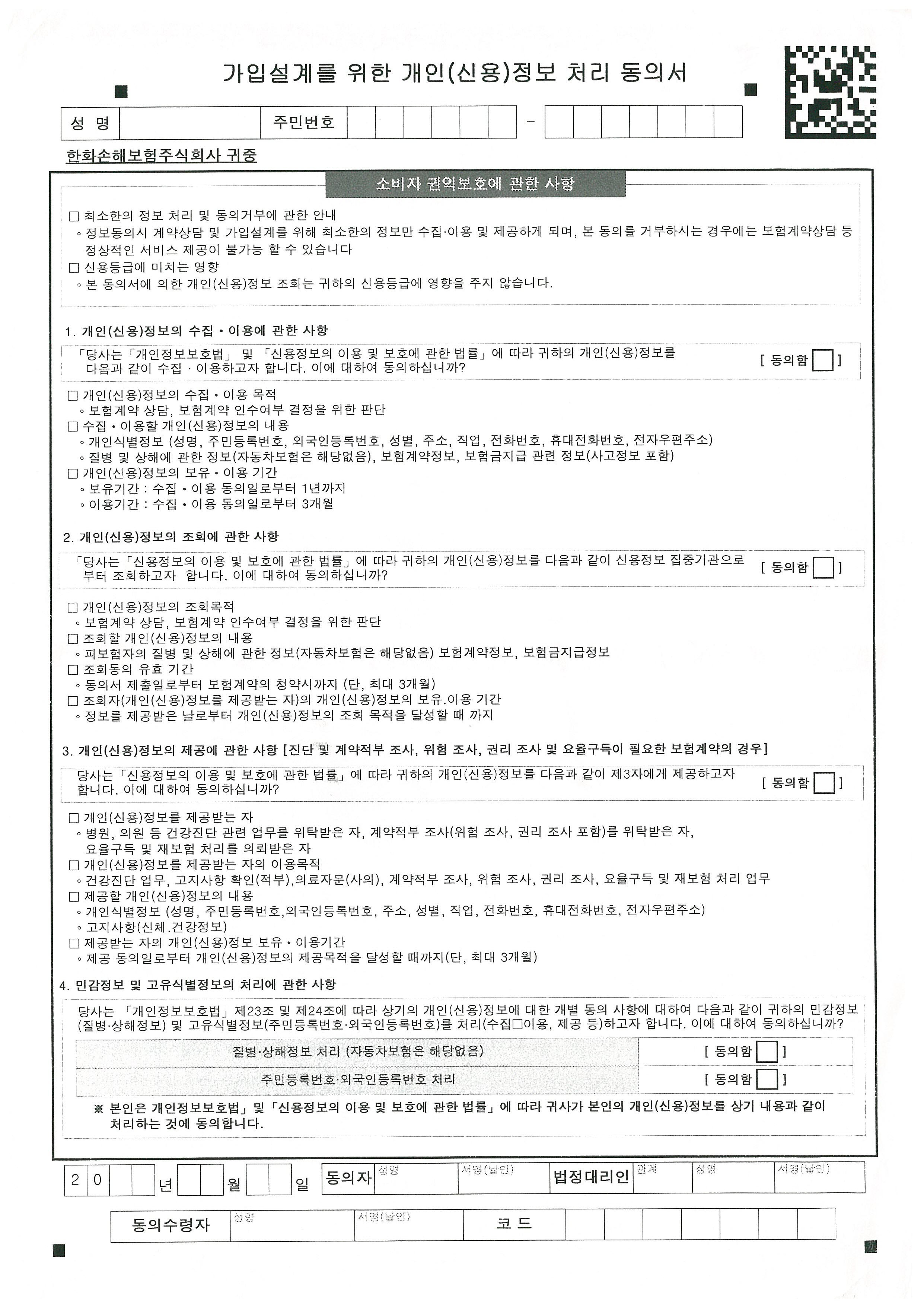※ 신청서 중 개인정보 처리 동의서(단체보험 가입용)는 반드시 친필(본인 및 보호자(법정대리인)) 서명 후 제출