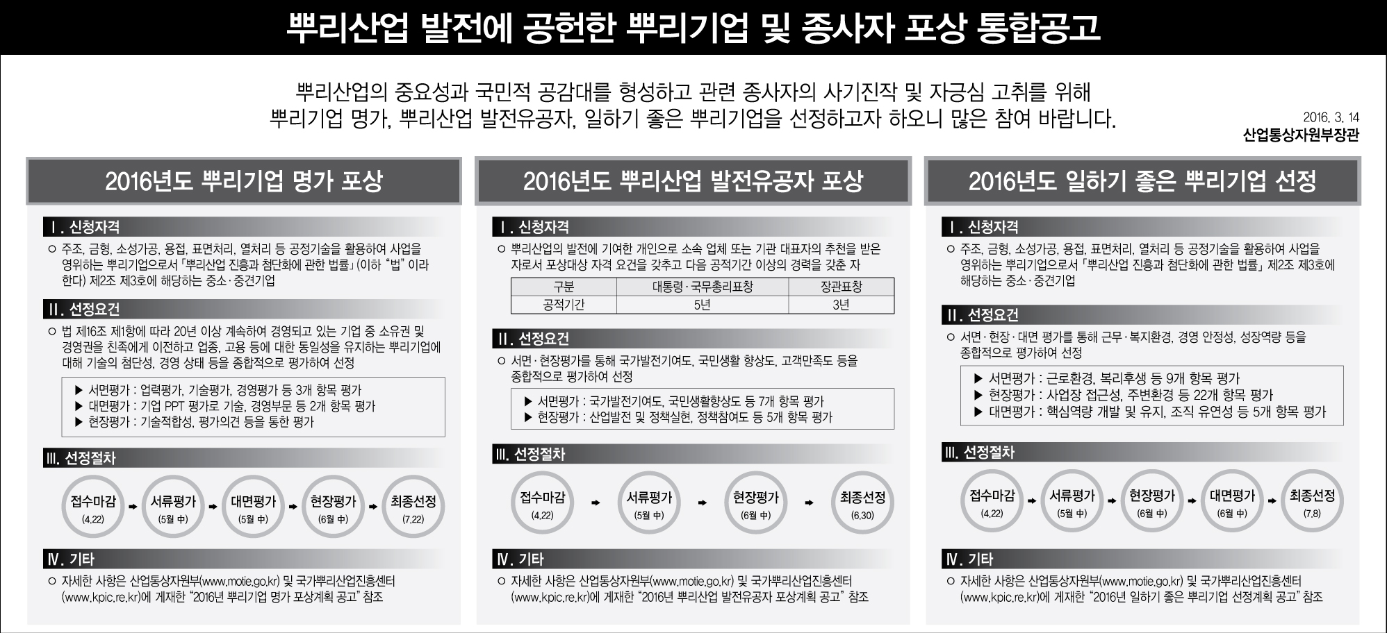 뿌리기업 명가, 뿌리산업 발전유공자, 일하기 좋은 뿌리기업을 선정하고자 하오니 많은 참여 바랍니다.