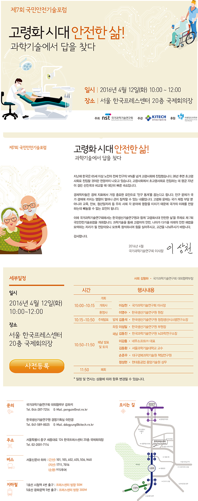 제7회 국민안전기술포럼 「고령화 시대 안전한 삶! 과학기술에서 답을 찾다」 개최 안내