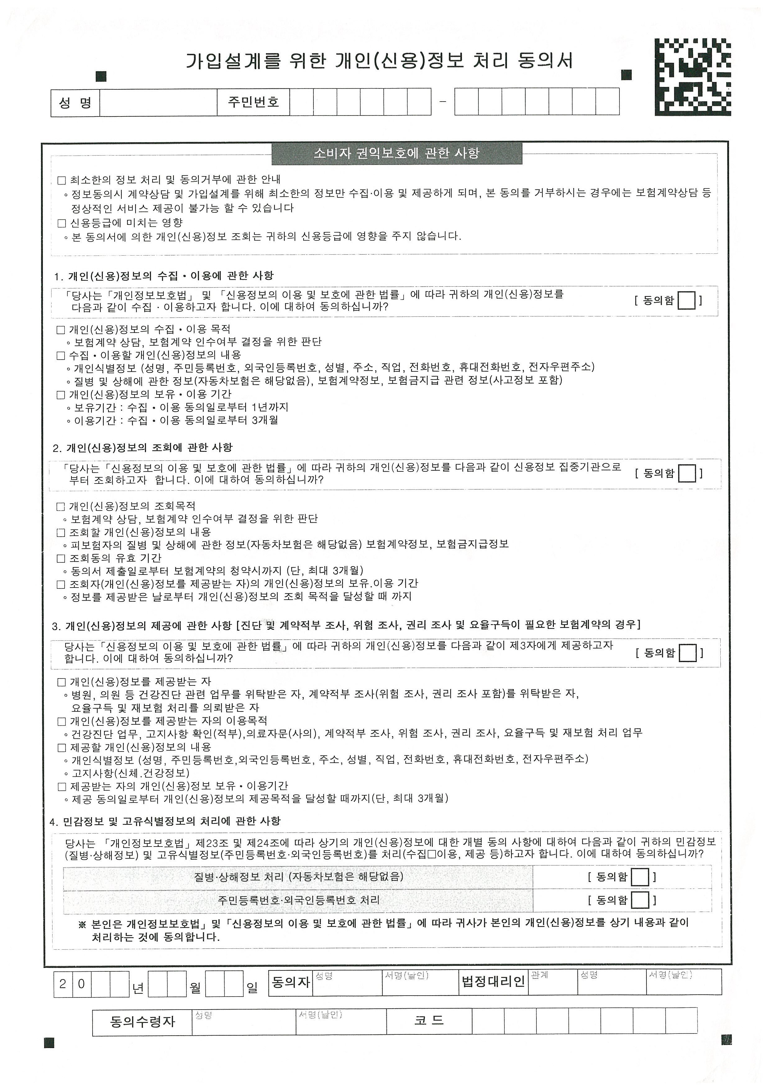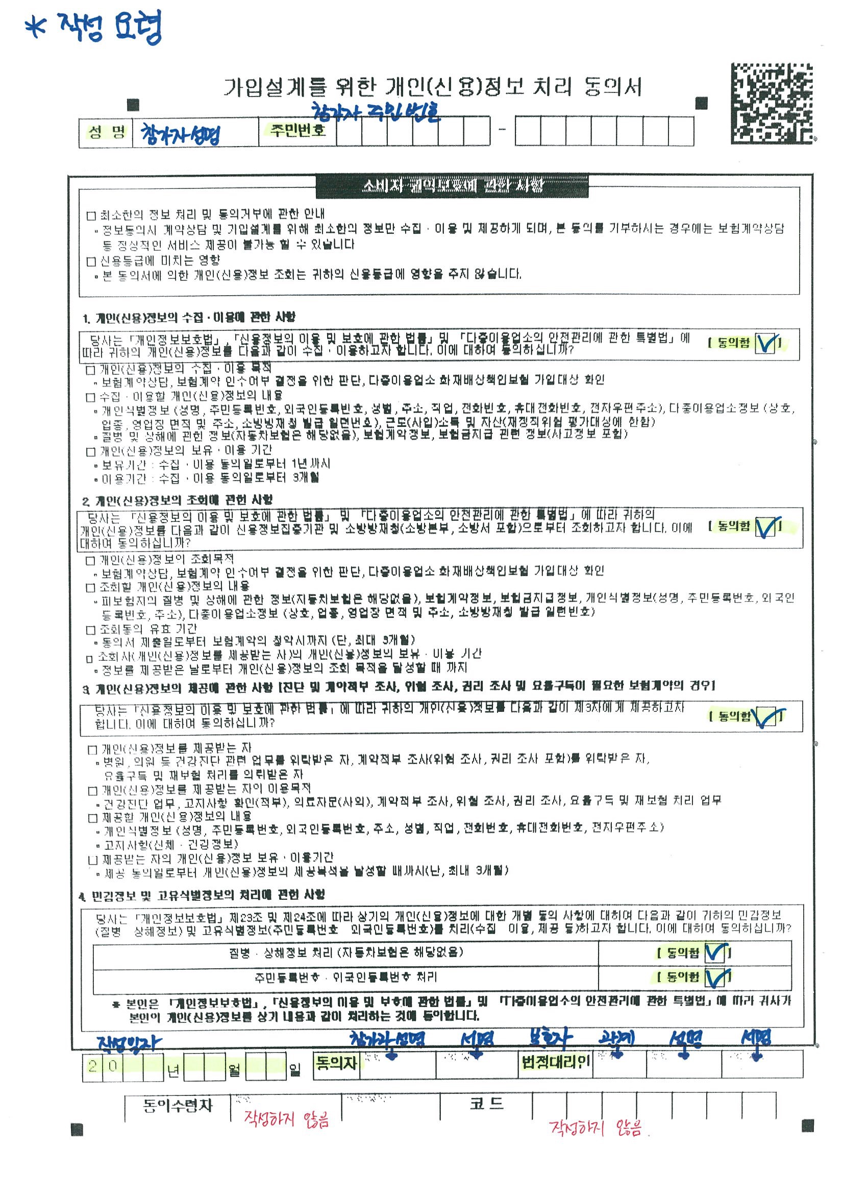 * 신청서 중 개인정보 처리 동의서 ( 단체보험 가입용 ) 는 반드시 친필 ( 본인 및 보호자 ( 법정대리인 ) ) 서명 후 스캔하여 제출