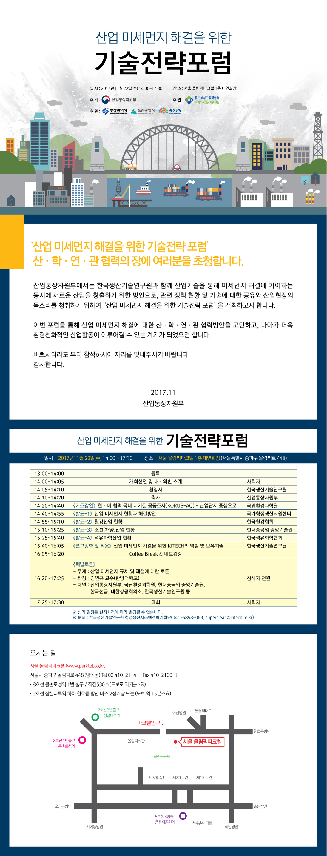 산업 미세먼지 해결을 위한 기술전략 포럼 개최안내(11/22)