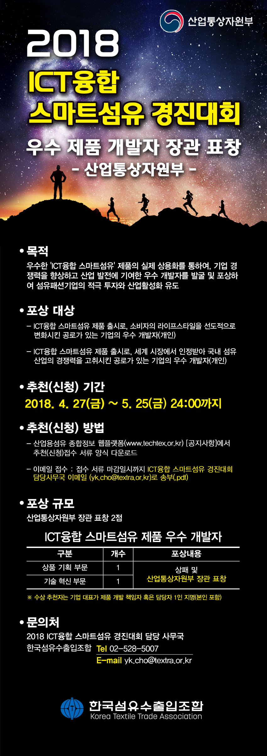 2018 ICT융합 스마트섬유 경진대회 시행 공고 (우수 제품 개발자 산업통상자원부 장관 표창)