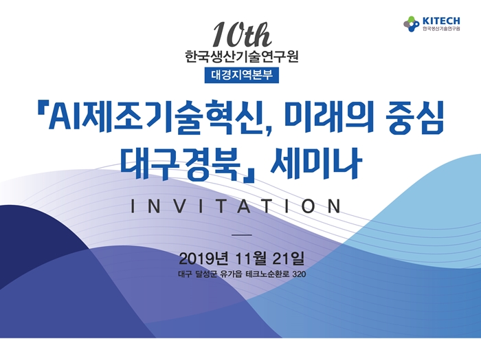 4차 산업혁명 시대 글로벌 제조혁신을 선도하는 한국생산기술연구원 대경지역본부가 개원 10주년을 맞이하였습니다. 이에 지난 10년을 함께 해주신 분들과 성과를 공유하고, 새로운 10년을 준비하기 위한 본부의 발전 전략과 새로운 제조기술 혁신 방안을 모색하는 시간을 마련하였으니 모쪼록 참석하시어 행사를 빛내주시길 바랍니다.