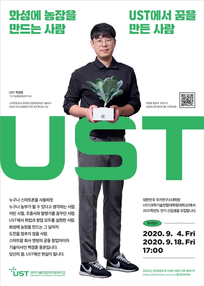 국가연구소대학원 UST에서 2021학년도 전기 신입생을 모집합니다.