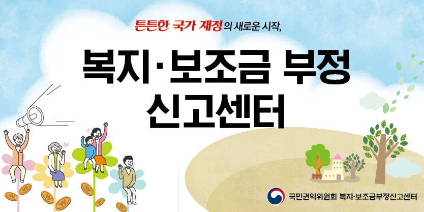 1. 국민권익위원회에서는 각종 정부보조금 부정수급으로 인한 재정누수 방지를 위해 2013. 10.부터 관계부처 합동으로 「복지·보조금 부정신고센터」를 운영하고 있습니다.