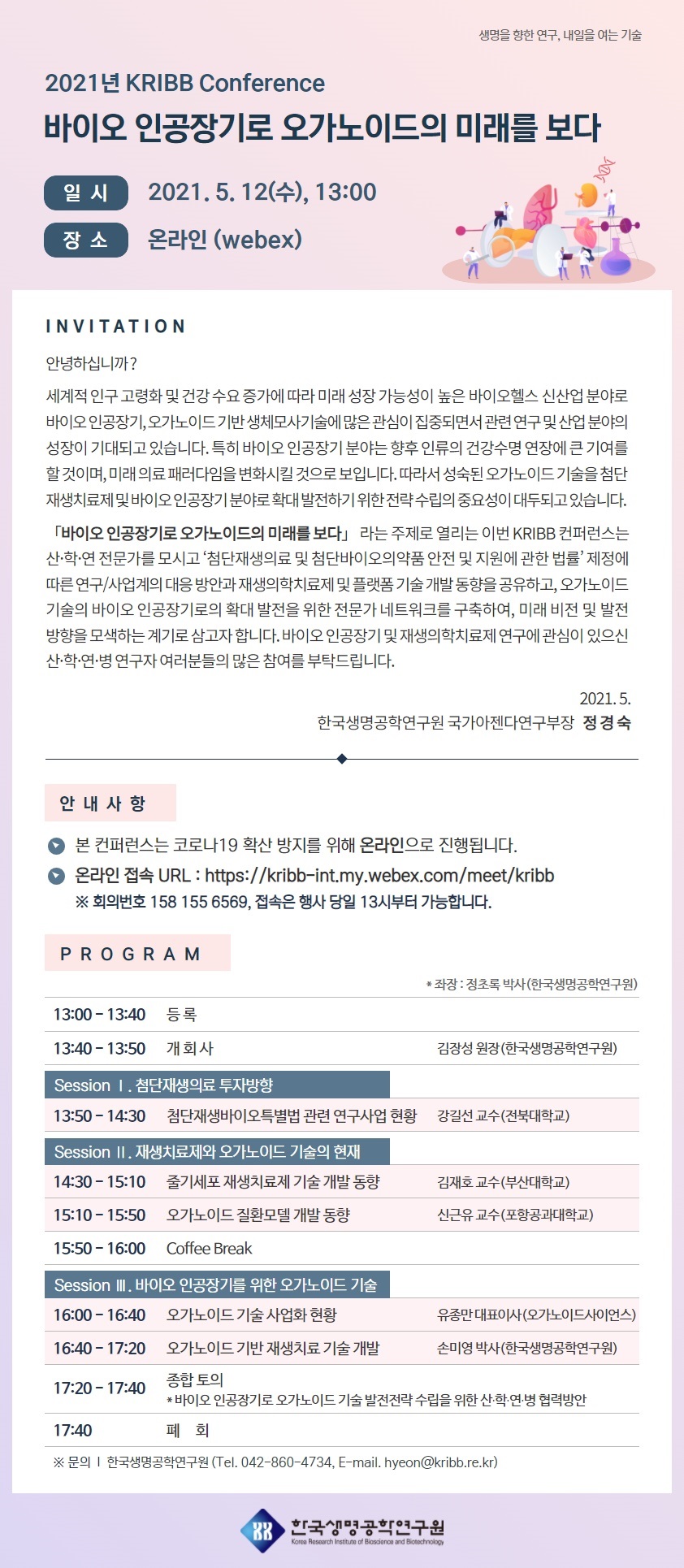 (한국생명공학연구원) 2021 KRIBB Conference 「바이오 인공장기로 오가노이드의 미래를 보다」 안내