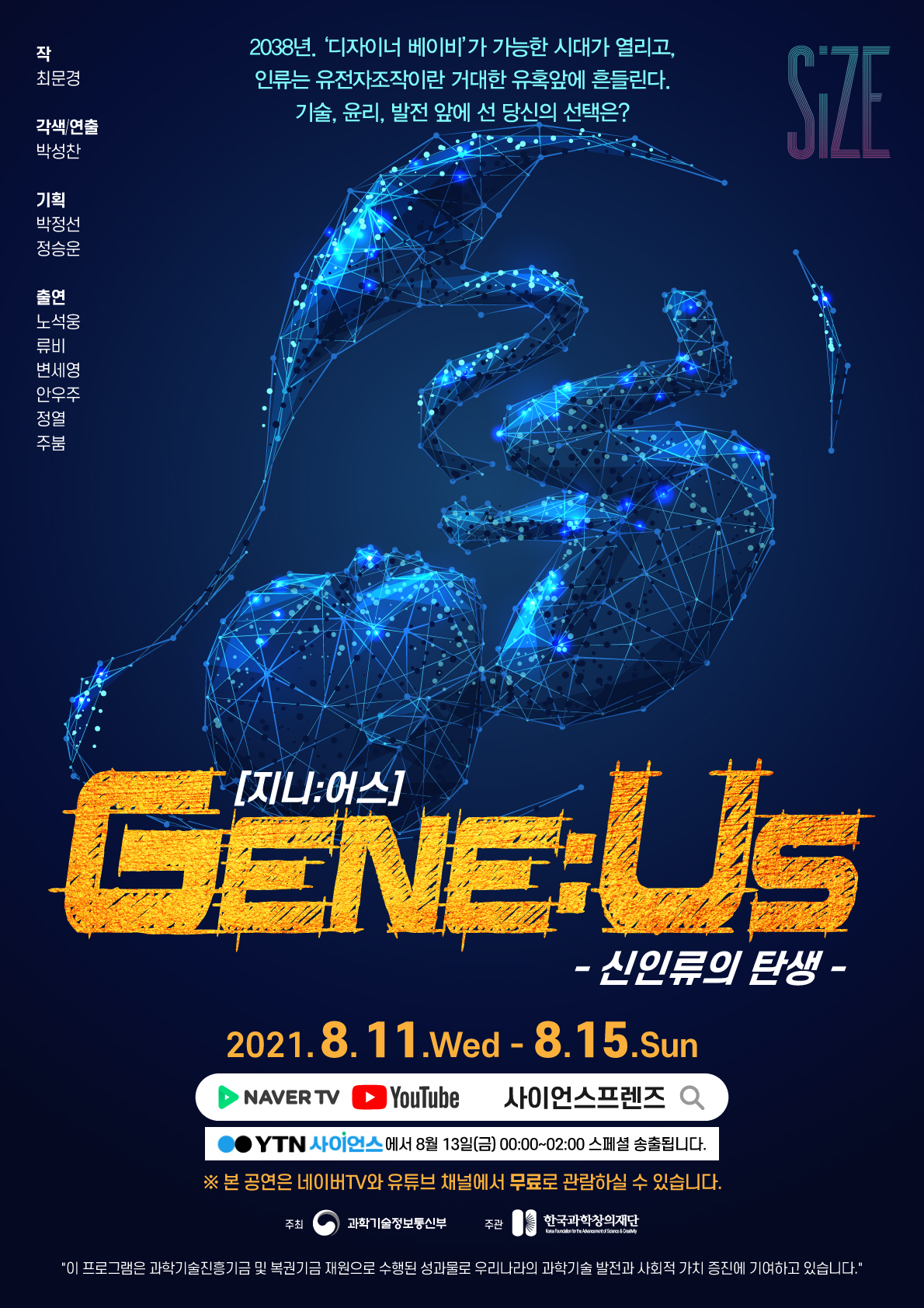 과학기술정보통신부와 한국과학기술창의재단에서는 과학성, 예술성, 대중성을 두루 갖춘 과학공연 「2021 종합예술과학공연 지니어스(GeneUS)」 를 진행합니다.