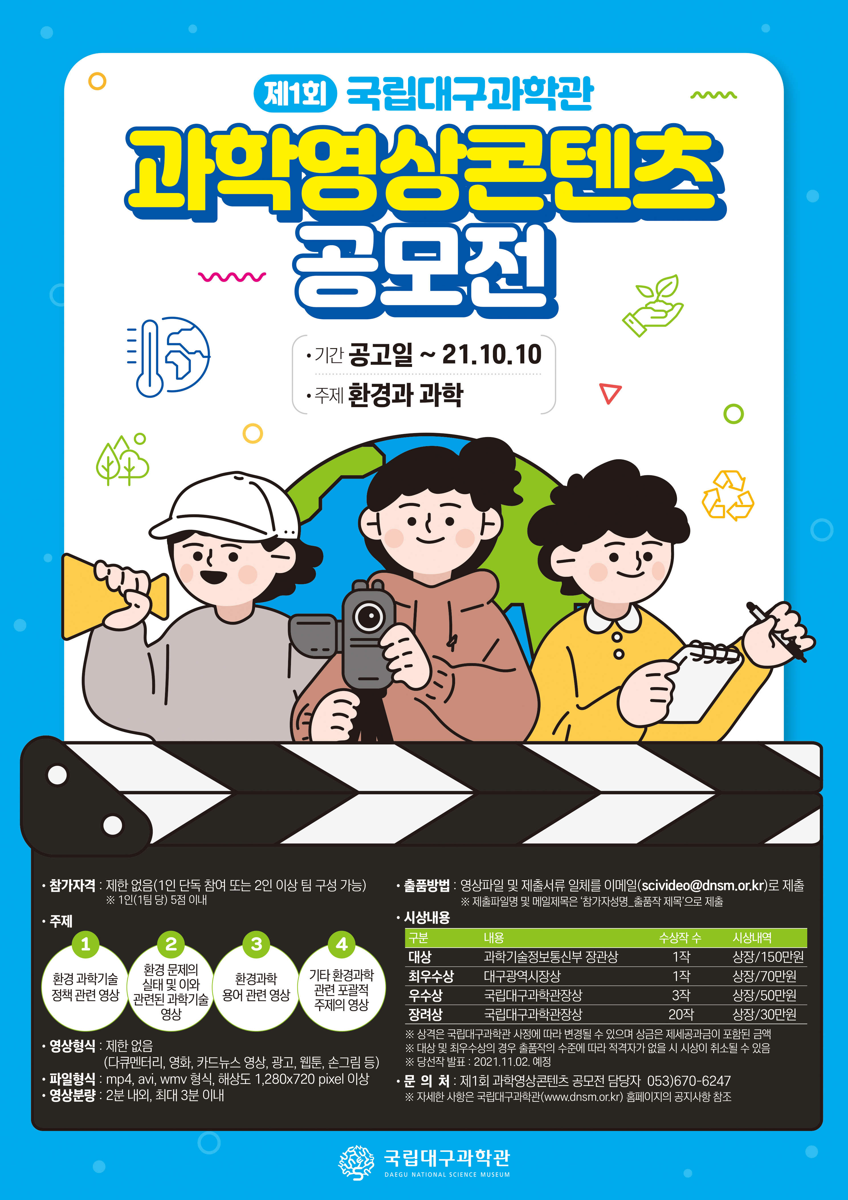 가. 건 명: 2021년 국립대구과학관「제1회 과학영상콘텐츠 공모전」안내