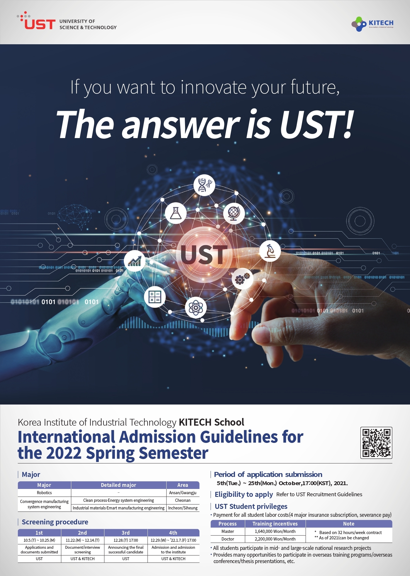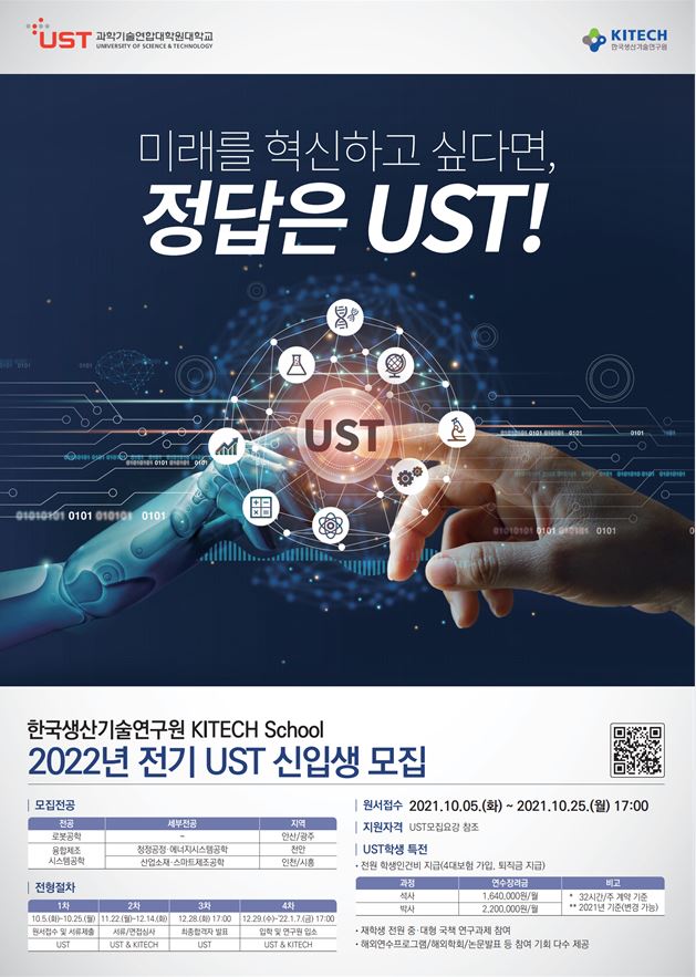 한국생산기술연구원 KITECH School 2022년 전기 UST 신입생 모집