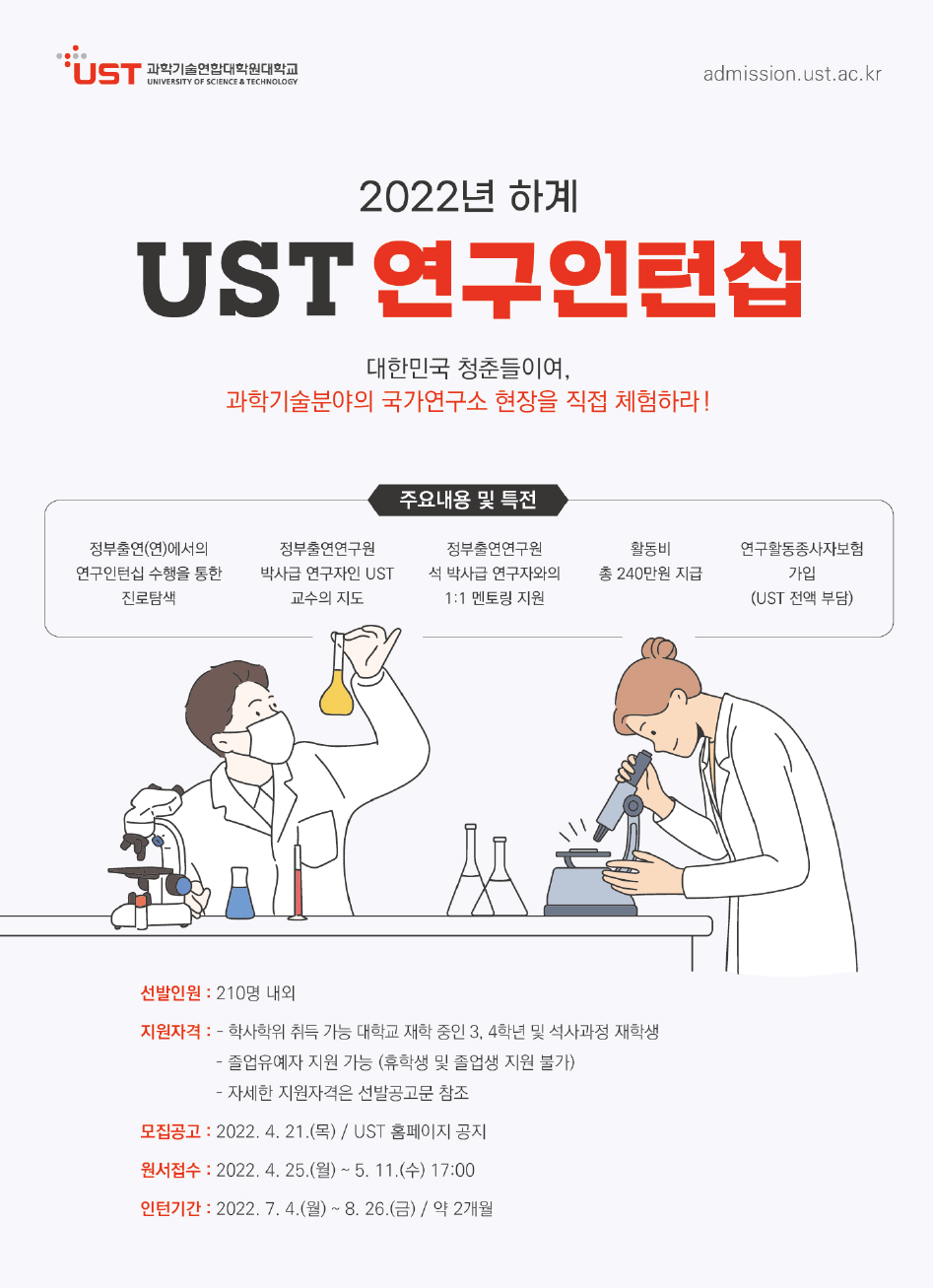 2022년 하계 UST 하계 연구인턴십 모집안내
