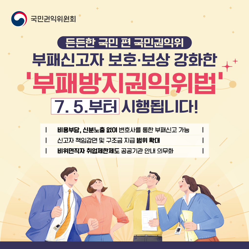 [국민권익위원회] 부패신고자 보호·보상 강화한 ‘부패방지권익위법’이 본격 시행 안내