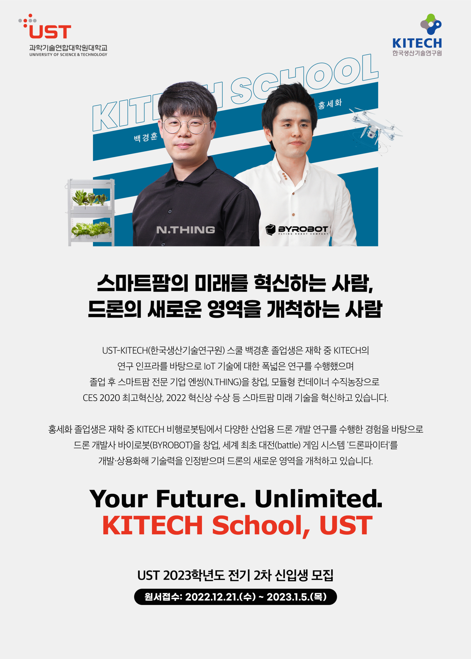 2023학년도 전기 2차 한국생산기술연구원 스쿨 UST 신입생 모집