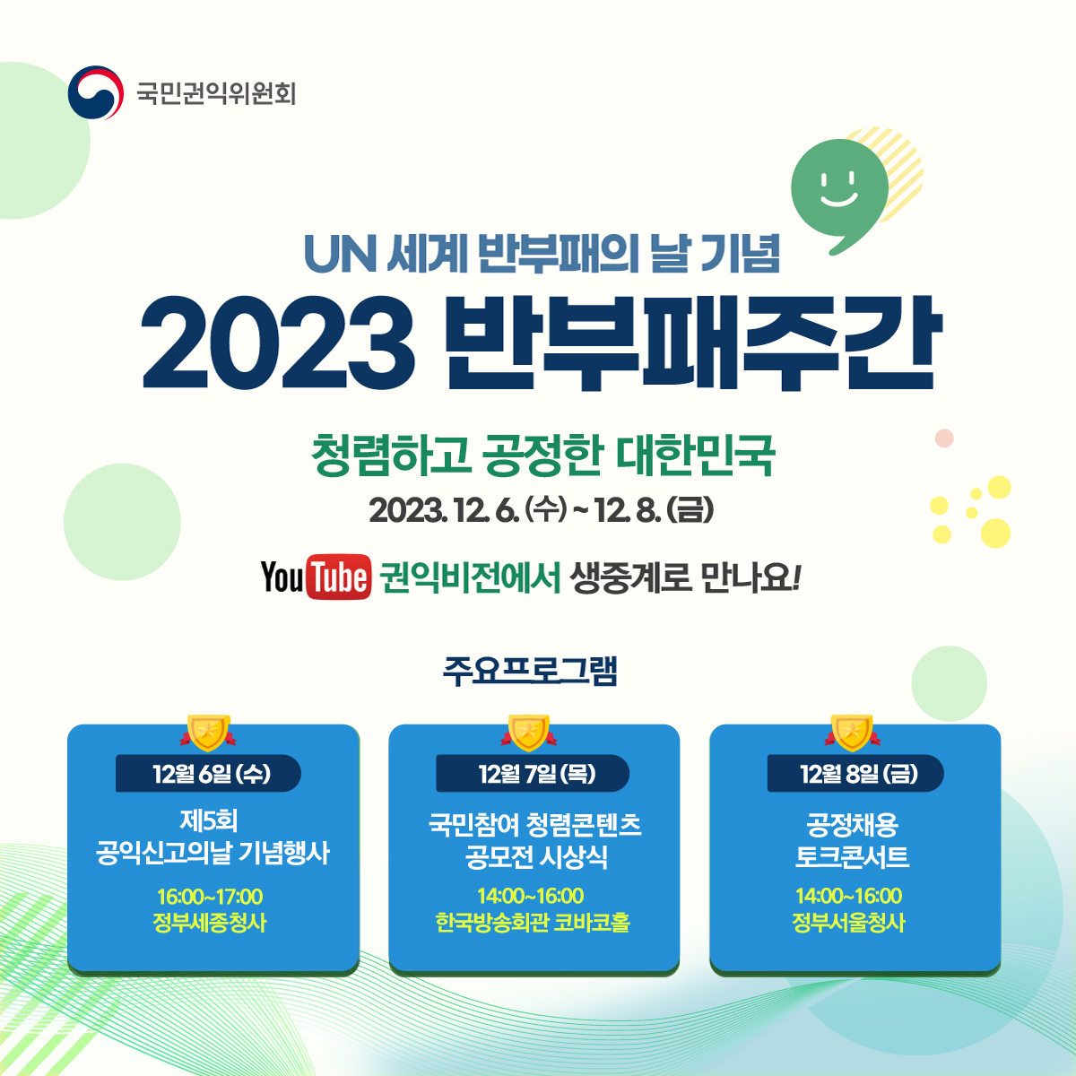 2023 반부패주간('23.12.6.~12.8.) - UN세계 반부패의 날 기념, 청렴하고 공정한 대한민국 (국민권익위원회)