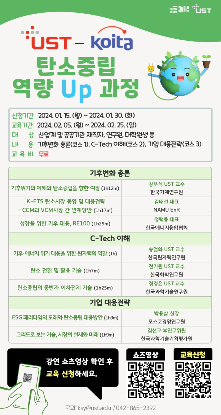 2024년도 UST-KOITA 탄소중립 역량 Up 온라인 과정 안내