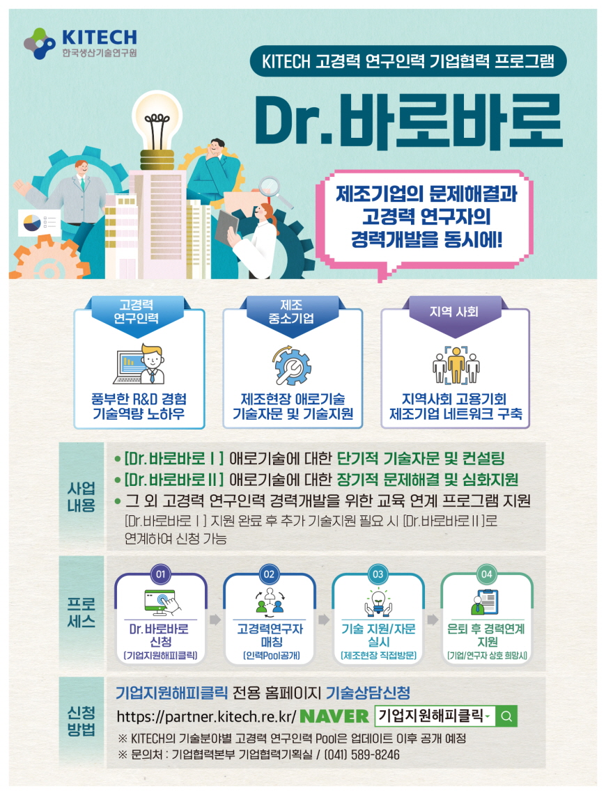 KITECH 고경력 연구인력 기업협력 프로그램 'Dr.바로바로' 안내
