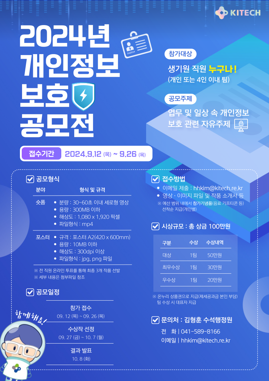 2024년 KITECH 개인정보보호 공모전 개최 안내(~9/26)