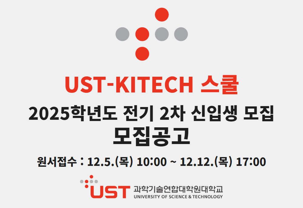 2025학년도 UST-KITECH스쿨 전기 2차 신입생 모집공고(~12/12)