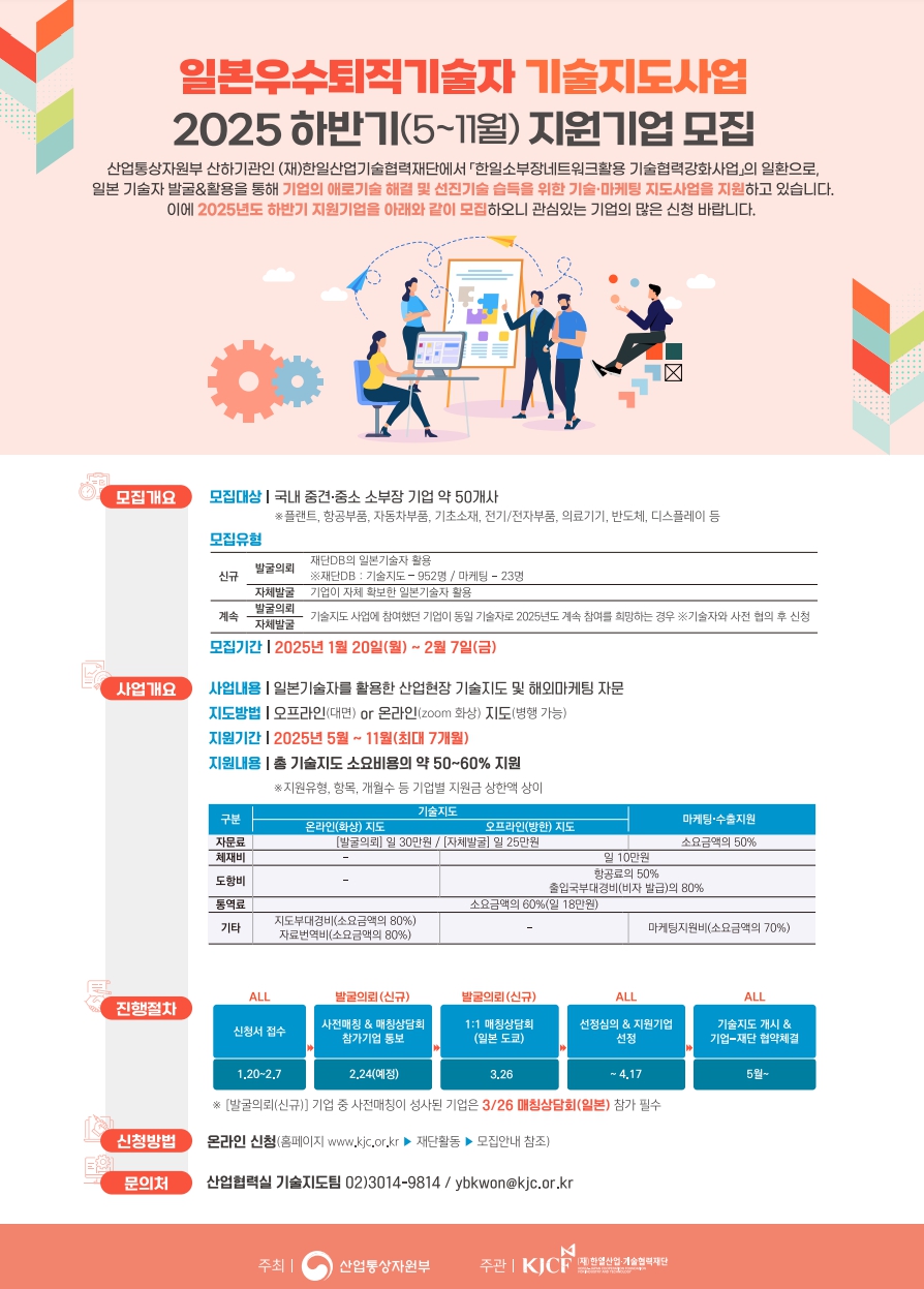 2025 일본우수퇴직기술자 기술지도사업 하반기(5~11월) 참가신청 안내(~2/7)