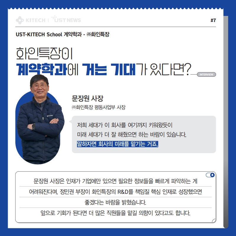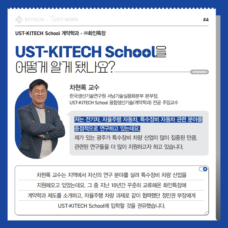 [KITECH스쿨] 화인특장의 미래, 그가 UST-KITECH스쿨에 진학한 이유는?