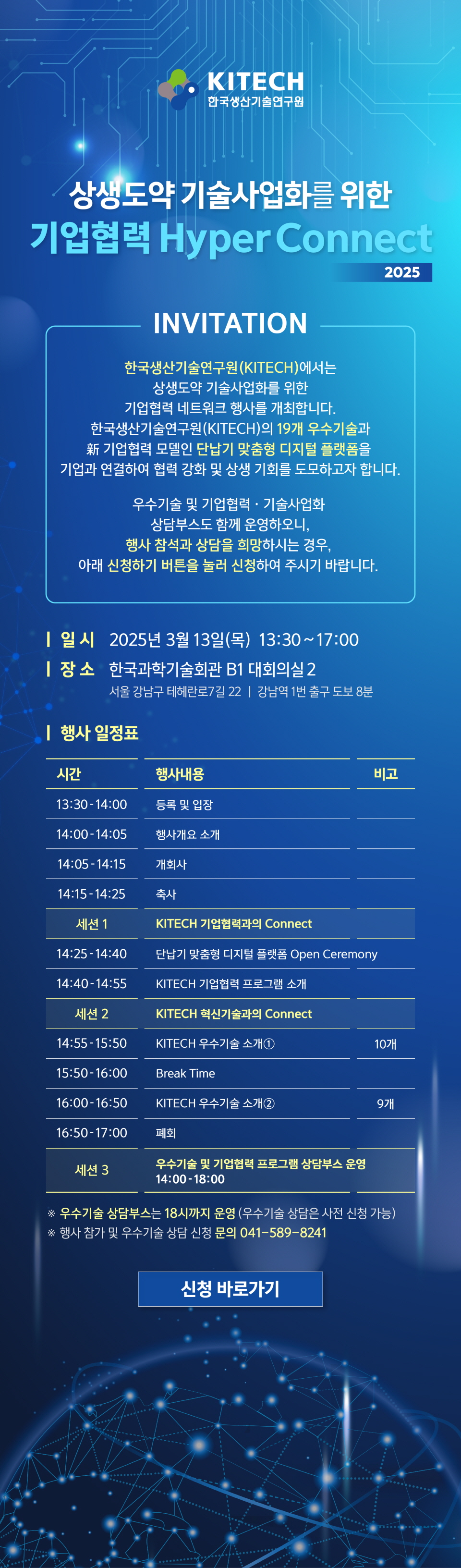 상생도약 기술사업화를 위한 기업협력 Hyper Connect 2025 개최안내(3/13(목) 13:30, 한국과학기술회관)