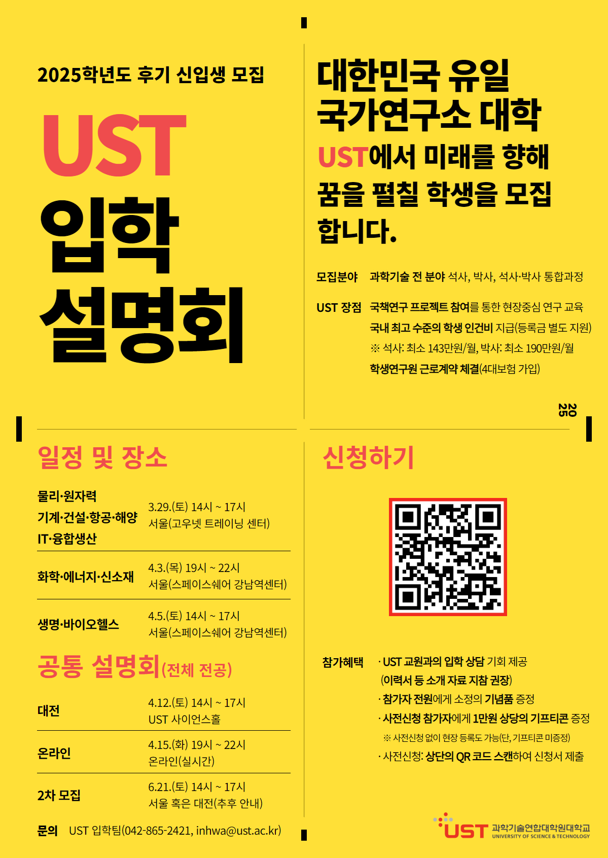 [UST] 2025학년도 후기 신입생 모집을 위한 입학설명회 개최 안내