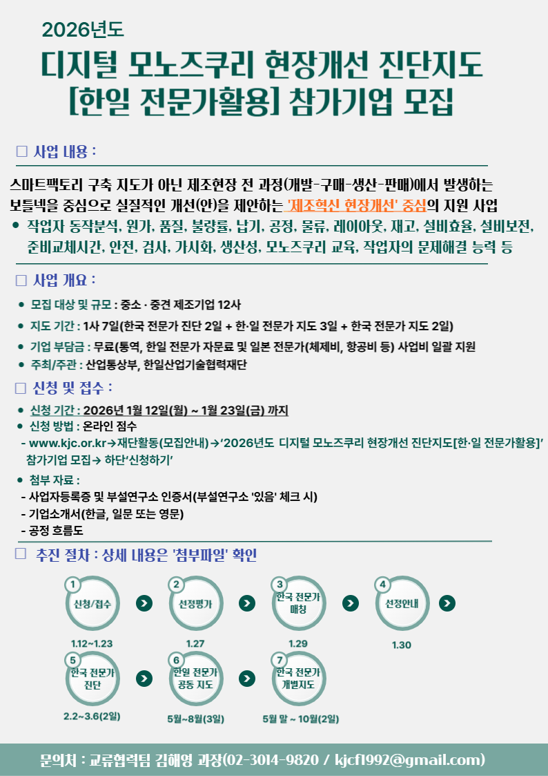 [한일산업기술협력재단] 2026년도 한일 전문가활용 참가기업 모집