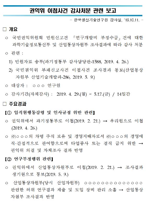 [국민권익위원회 이첩] 감사처분 관련 보고