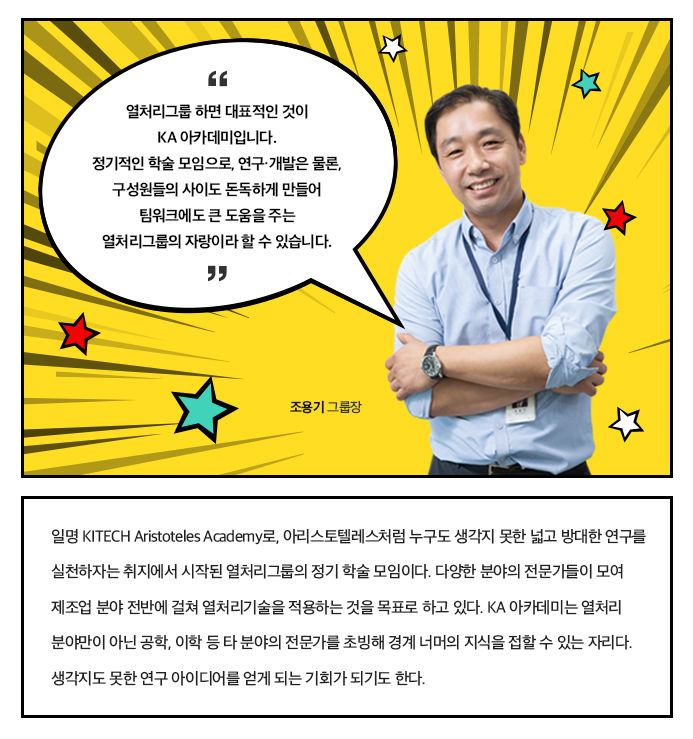 °¢ÀÚ ´Ù¸¥ ºÐ¾ßÀÇ Àü¹®°¡ÀÌÁö¸¸ ¿Ã³¸®¶ó´Â ¿Á¤ÀÌ ±¸¼º¿øµéÀ» ÇÑ µ¢¾î¸®·Î À¶È½ÃÄ×´Ù´Â °ÍÀÌ´Ù. Á¶¿ë±â ±×·ìÀåÀº ¸ðµç »ê¾÷¿¡¼ »Ñ¸®±â¼úÀÌ ±Ù°£À» ÀÌ·çµíÀÌ ¿¬±¸・°³¹ß¿¡ À־µ »Ñ¸®¶ó°í º¼ ¼ö ÀÖ´Â ±âÃÊ¿¬±¸°¡ Áß¿äÇÏ´Ù°í µ¡ºÙ¿´´Ù.
