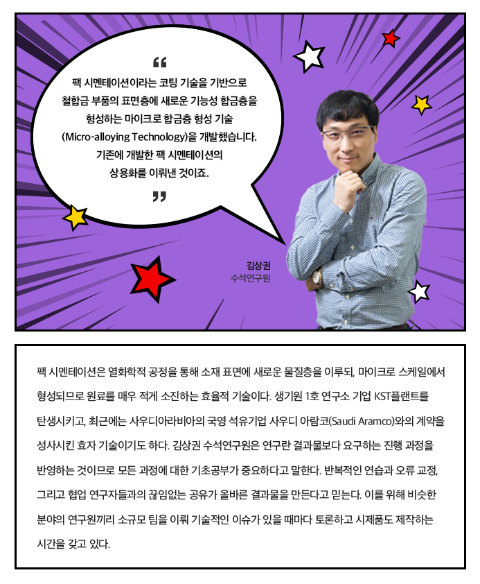 ¿Ã³¸® ºÐ¾ßÀÇ °íÁúÀûÀÎ ¹Ì¼ÇÀ» ÇØ°áÇÏ´Â µ¥ ÁÖ¸ñÇÑ °á°ú °ý¸ñÇÒ ¸¸ÇÑ ¼º°úµµ âÃâµÇ°í ÀÖ´Ù. ¼Ò°á °øÁ¤ ½Ã ºÒÇÊ¿äÇÑ ¿¿¡³ÊÁö ³¶ºñ¸¦ ¾ø¾Ö±â À§ÇÑ ¸ðµ¨¸µ ±â¼úÀÎ ¡®¿¡³ÊÁö ¼öÄ¡Á¦¾î ¿Ã³¸®±â¼ú¡¯, ±×¸®°í 90³â´ë¿¡ °³¹ßµÆÁö¸¸ ½ÃÀå µµÀÔÀÌ ºÒ°¡´ÉÇß´ø ¡®ÆÑ ½Ã¸àÅ×À̼Ç(Pack Cementation)¡¯ »ó¿ëÈ ±â¼úÀ» ²ÅÀ» ¼ö ÀÖ´Ù. ¡®ÆÑ ½Ã¸àÅ×À̼ǡ¯Àº ÆÑ °øÁ¤À» ÅëÇØ ºÎǰÀÇ ³»½Ä¼ºÀ» ³ôÀÌ°í ºÎ½Ä°ú ¸¶¸ð¸¦ ÁÙ¿© ºÎǰ °æÀï·ÂÀ» ´ëÆø Çâ»ó½ÃŰ´Â ±â¼úÀÌ´Ù.